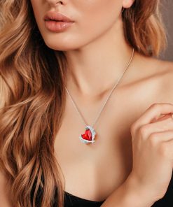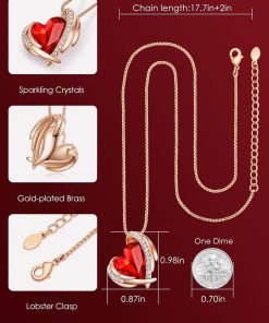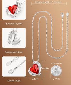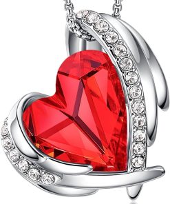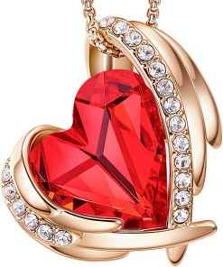 Our Guardian Angel Love Heart Pendant Necklace is a one-of-a-kind piece, exquisitely adorned with a vibrant red Austrian crystal, the traditional birthstone of January – a brilliant, red Austrian crystal. The crimson stone, traditionally symbolic of love, courage, and passion, adds depth and color to this classic yet contemporary design. The necklace seems to whisk you away, across the vast universe of time and space, immersing you in life’s opulence and the profound triumph of love. It resonates with the sentiment of a guardian, reminiscent of an everlasting protective angel, tenderly warming your heart. This pendant, deep in its symbolic resonance and beauty, stands as the perfect lovingly chosen gift for women and girls.
